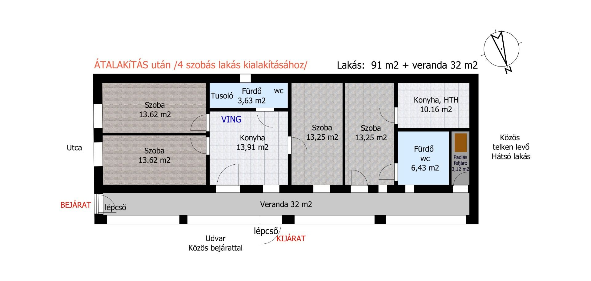 A helyiségek mérete és elrendezésre lehetővé teszi akár 3-4 normál méretű szoba kialakítását, melyről készítettem egy rajzot, ha érdekli tekintse meg!